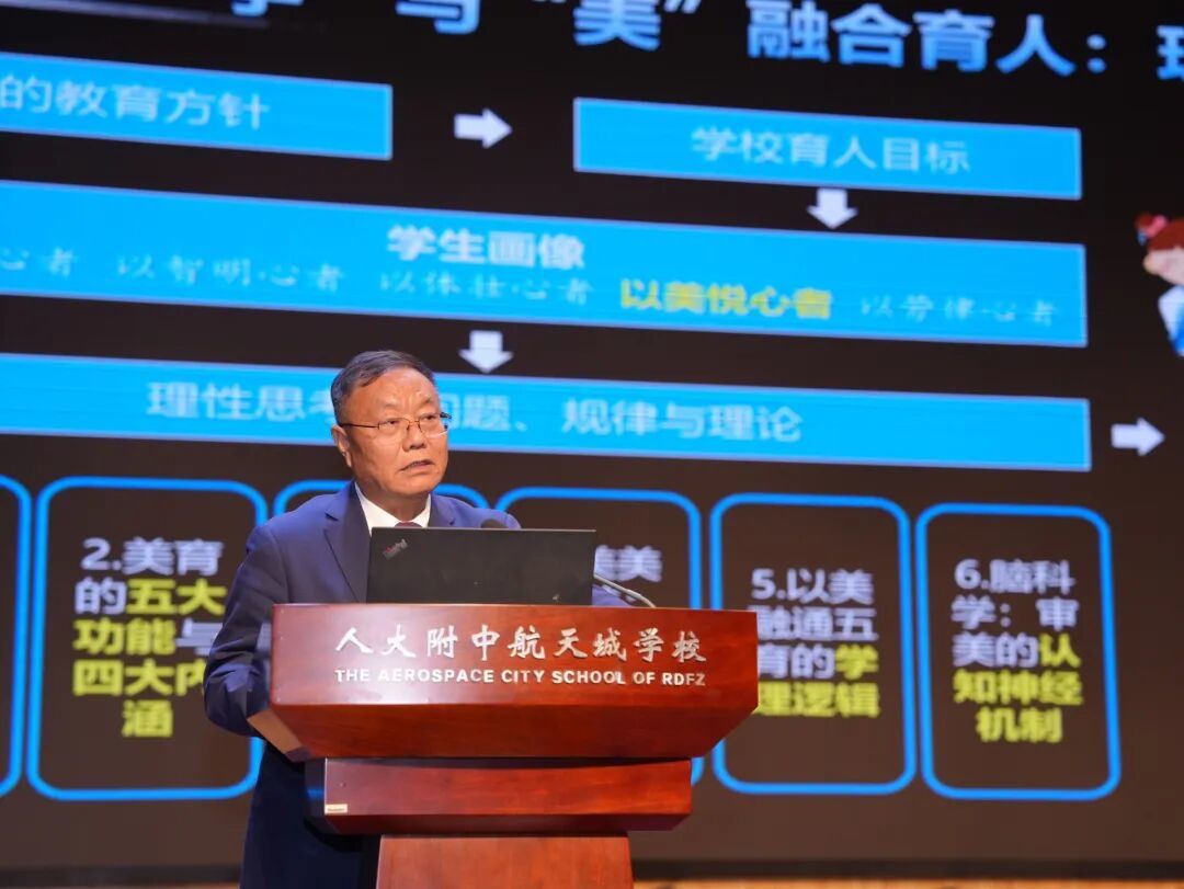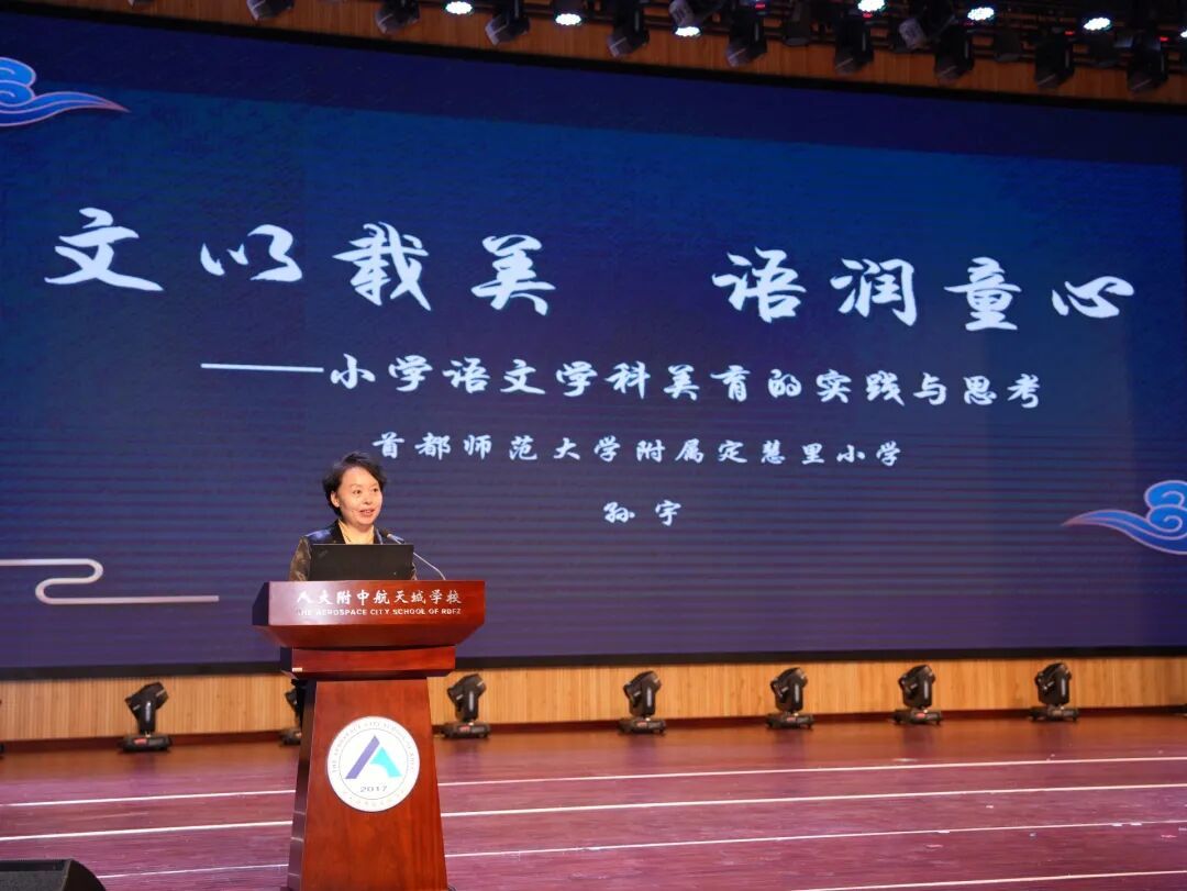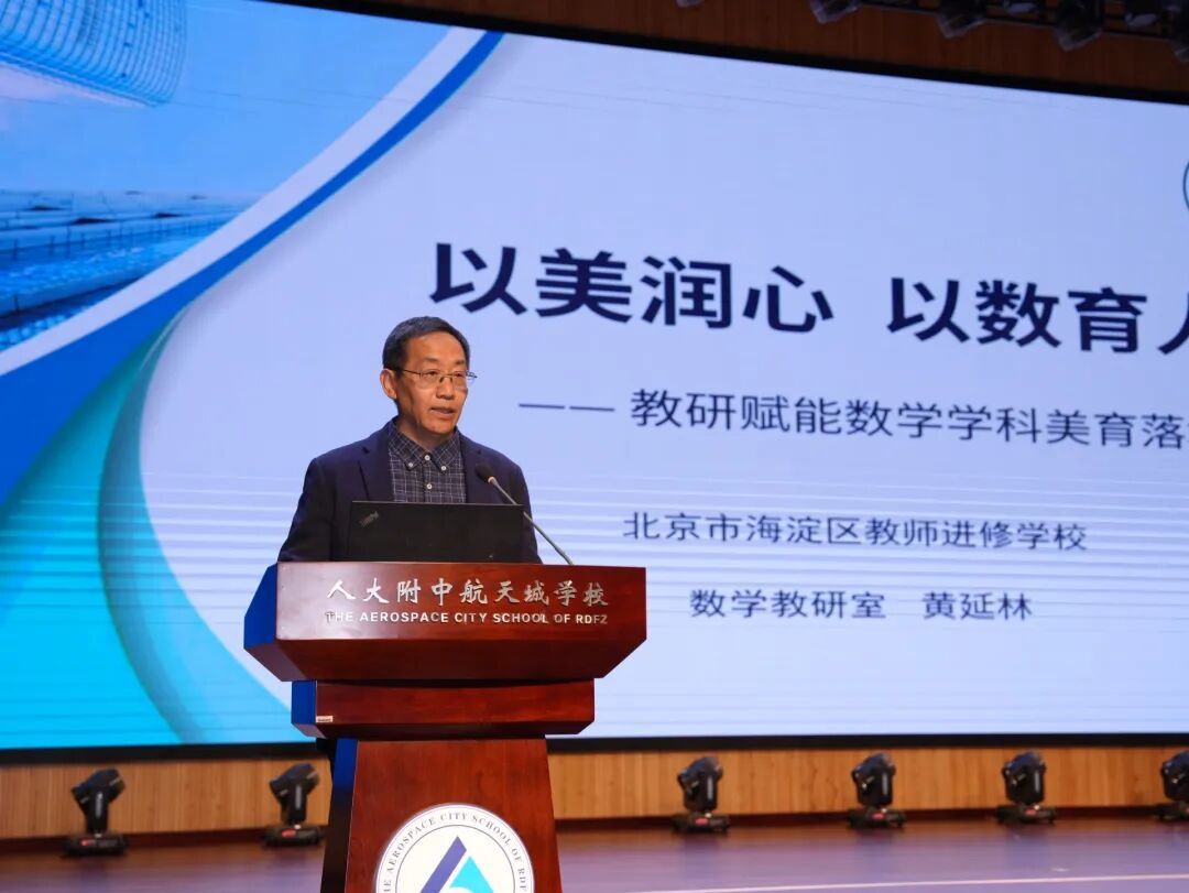 在经验交流环节,四位不同层面的代表分享实践探索成果,为学科美育落地提供多元参考。人大附中航天城学校校长周建华系统介绍了学校整体推进学科美育的经验成效;中关村二小教学副校长宋连海分享了教学管理层面支持美育落地的创新举措;定慧里小学语文教师孙宇讲述了语文教学渗透美育的课堂实践;海淀区教师进修学校数学教研员黄延林展现了教研力量赋能数学学科美育的落地路径。